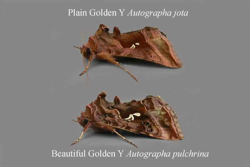 2442 Beautiful Golden Y Autographa pulchrina © Tom Tams Autographa pulchrina | |  2442 Beautiful Golden Y Autographa pulchrina © Tom Tams Autographa pulchrina | |  2443 Plain Golden Y Autographa jota © Tom Tams Autographa jota | |  2444 Gold Spangle Autographa bractea © Tom Tams Autographa bractea | |  2447 Scarce Silver Y Syngrapha interrogationis © T.J Tams Syngrapha interrogationis |
