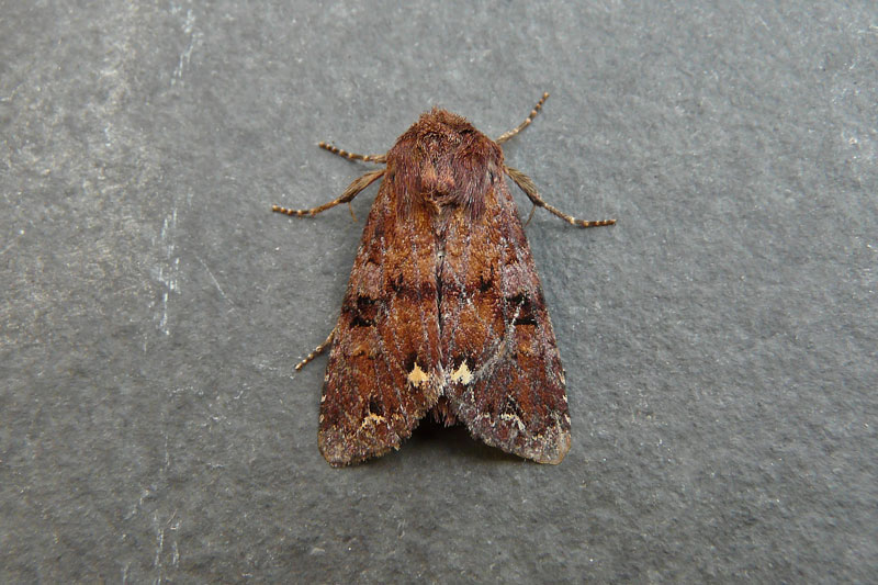 Family: Noctuidae 73.271 Broom Moth Ceramica pisi There are 1214 county records of 2576 individuals from 226 different sites. First recorded in 1839. Individual records comprise of: [2454 Adult] [2 Dead] [120 Larval] .Occurrence by month (Adults)